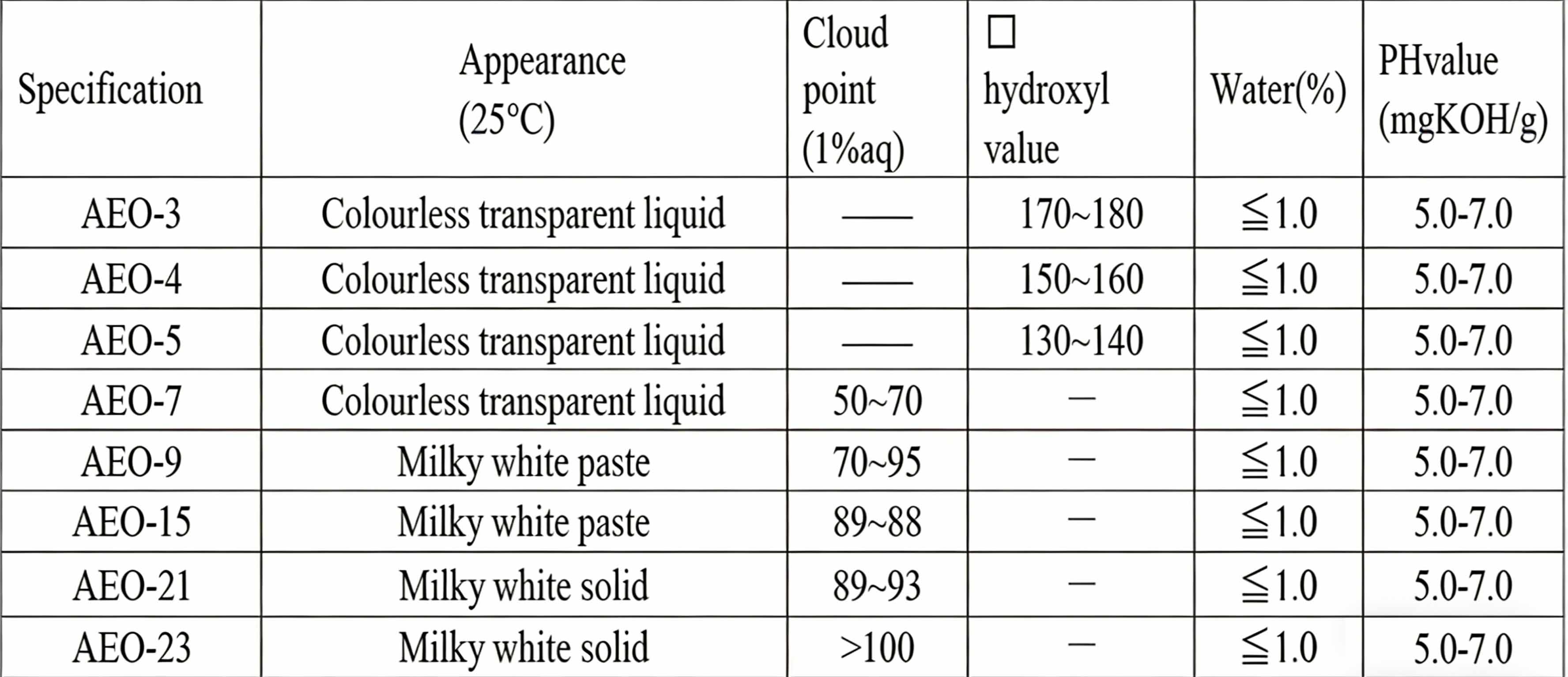 醇醚(AEO)是一种非离子表面活性剂,广泛应用于各种清洁和工业领域。它们是通过脂肪醇的乙氧基化反应制得的,该过程是将环氧乙烷添加到醇中,生成一种分子,该分子具有疏水性(防水)的醇基和亲水性(亲水)的乙氧基。